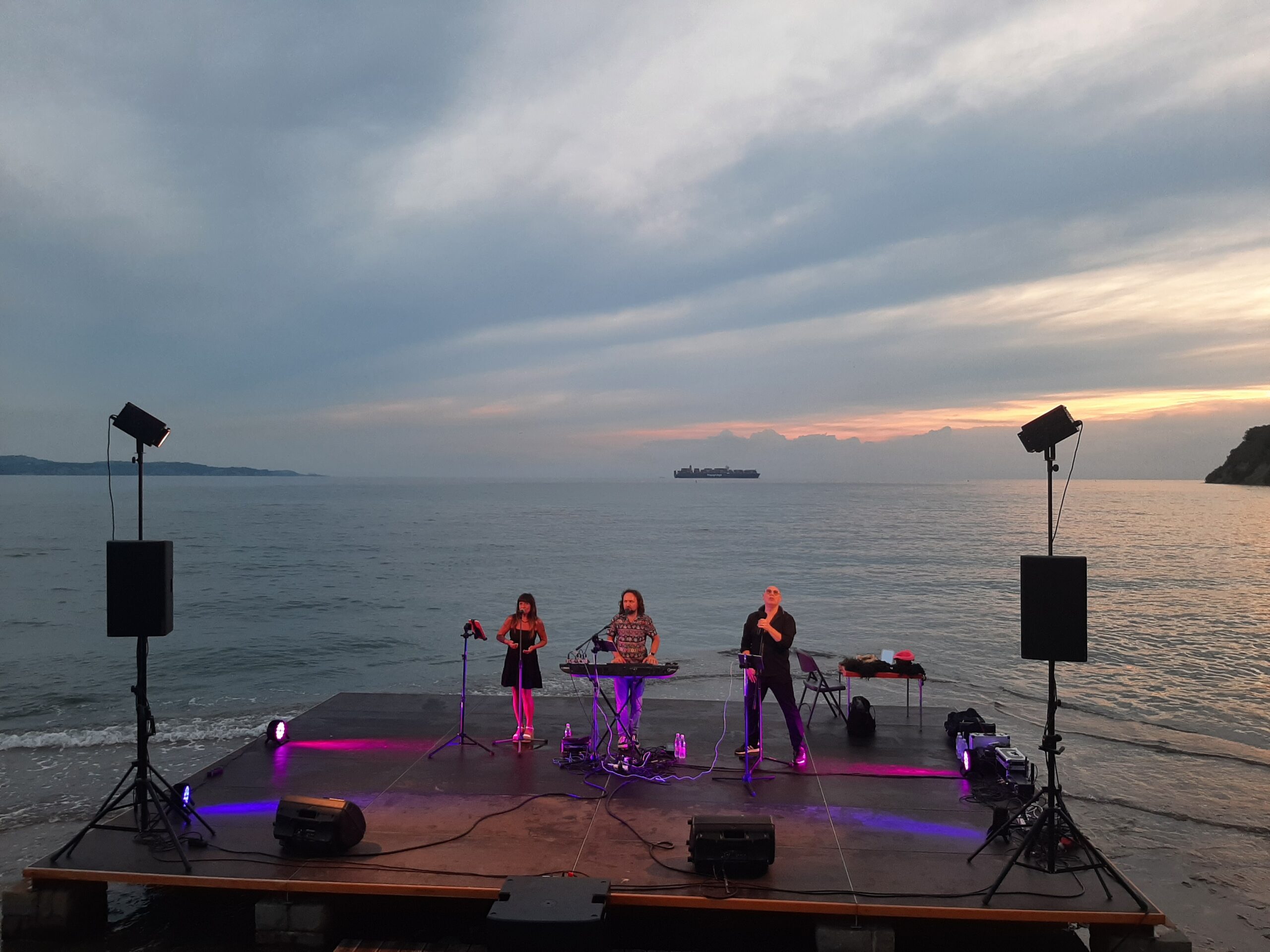 Po preložitvi nastopa zaradi slabega vremena, smo 24. julija uspeli pripeljati trio Crampi Elisi (Maxino, Flavio in Elisa) na plažo v Valdotri.