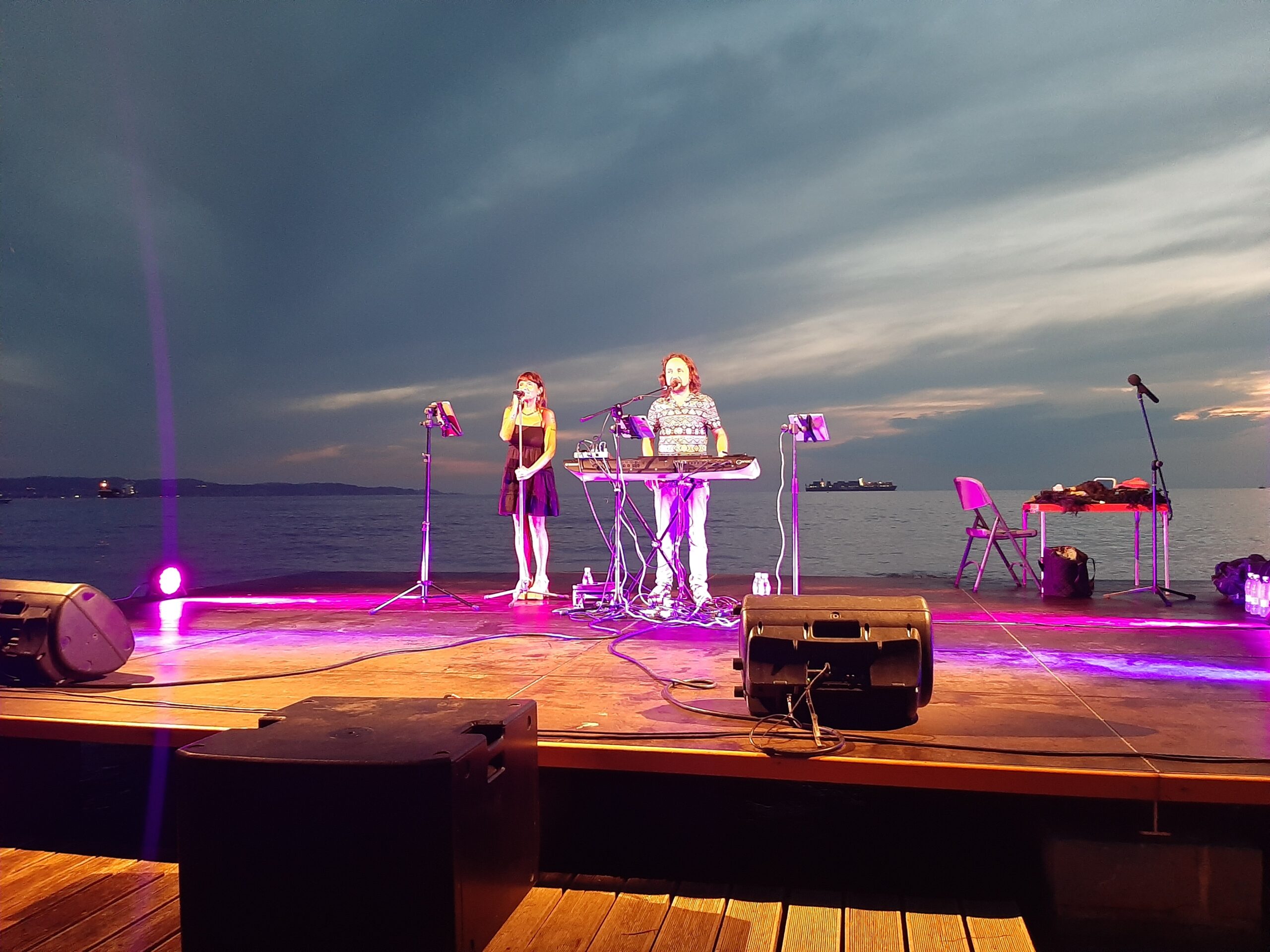 Prijeten poletni večer je zaznamoval eklektični nastop, ki je navdušil in nasmejal prisotno občinstvo z imitacijami znanih osebnosti, glasbenimi uspešnicami prijetno začinjenimi s tržaškim narečjem in zabavnimi improvizacijami. Tako so se pokazale izjemne sposobnosti umetnikov: veličastni glasovi, simpatične šale, igranje z ritmom in besedna ustvarjalnost.