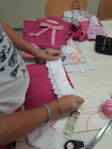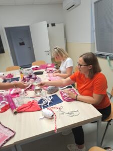 8. septembra je potekala delavnica, na kateri so bile izdelane dekoracije za že pripravljene kvačkane trakove in pripravljeni dodatni kosi tkanin, ki bodo dodani k tkanimi izdelki. Delo se bo nadaljevalo samostojno do konca septembra, nato pa bodo kosi tkanin sešiti v trakove, ki bodo ovite okoli debel dreves. Tako se bodo mimoidoči, ko bodo videli drevesa, okrašena z rožnatimi okraski, spomnili na pomembnost preventive in zgodnjega odkrivanja raka dojk.