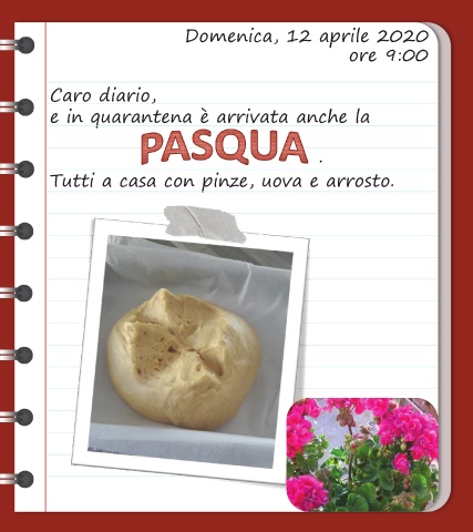 Domenica, 12 aprile 2020 ore 9:00 Caro diario, e in quarantena è arrivata anche la . Tutti a casa con pinze, uova e arrosto.